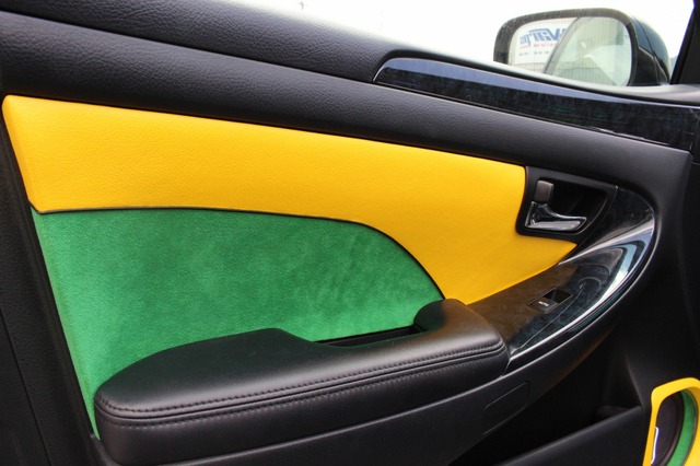 トランクに大胆なラスタカラーを取り入れた橘さんのクラウン。コクピットにも同様にグリーン/イエローのカラーリングを採用して統一感を出した。製作したのは広島県のWarps。左右別デザインなど同ショップのテクニック&センスがコクピットにも投入された。
