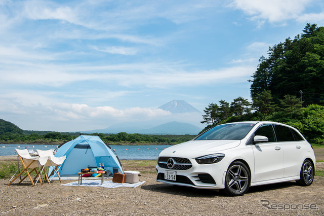 ふわりと雲のスカーフを巻いた富士山と、踊るようにさざ波が揺れる湖面を借景に、生まれ変わった新型『Bクラス』は優美で自信に満ちた輝きを放っていた