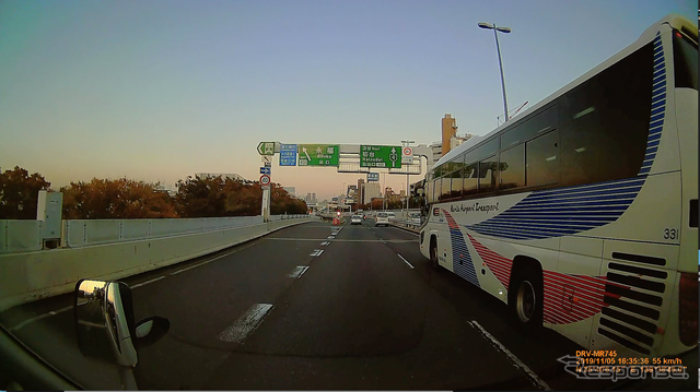 《PHOTO:清水知恵子》 高速走行中でも景色や標識がしっかりと録画されている