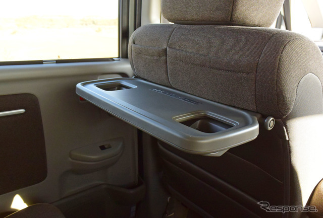 《撮影 井元康一郎》 2列目シートのミニテーブルを出した状態。