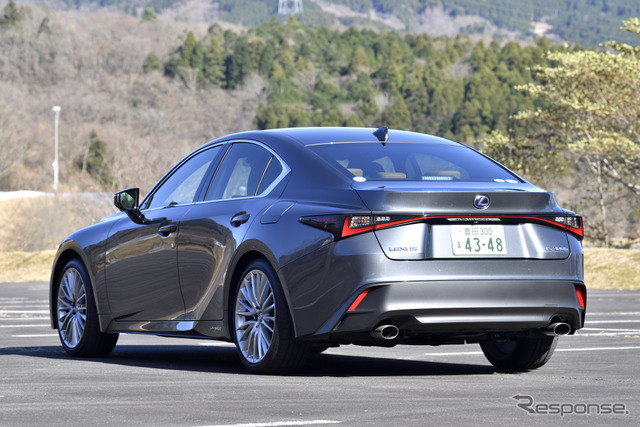 これでもマイナーチェンジなの?と驚いたのがレクサス『IS』の変更だ。外装はフロントピラー(柱)と中央のピラー、フロントウインドーなど、限られた部分以外はすべて刷新した。ボディも少し拡大されて全幅は1840mmになっている。