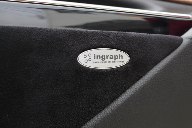 アウターバッフルをドアの内張りに固定しているビスを隠すのがこのエンブレム。ショップロゴを配したデザイン性豊かなパーツだ。