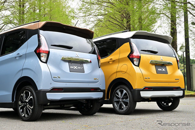 《写真撮影 雪岡直樹》 三菱 eKクロスEV(左)とeKクロス(右)