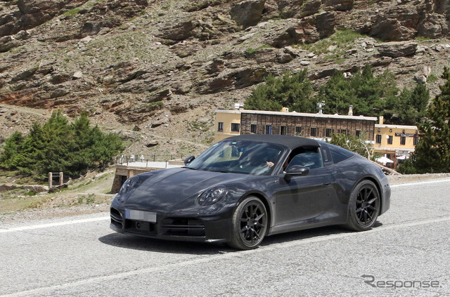 ポルシェ『911』派生セミオープンモデルとなる、『911タルガ』改良新型(992.2)を、高温の南ヨーロッパでスクープした。シリーズ初のハイブリッドが採用されるという911。はたしてどのような進化を果たすのか。
