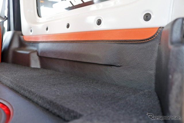 ラゲッジフロアだけでなくクォーターパネルも合わせて加工が施される。間接照明を仕込んだパネル加工も見どころとなった。