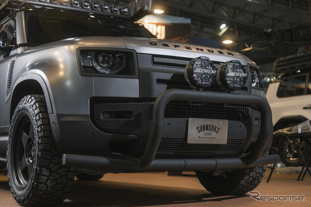 千葉県の幕張メッセで開催中の東京オートサロン2026に「4×4エンジニアリングサービス」が出展。ランドローバー『ディフェンダー』とトヨタ『ランドクルーザー250』を展示、ラグジュアリーとオフ志向という2つのカスタムの方向性を見せてくれた。滋賀県にあるSUNWORKSで製…