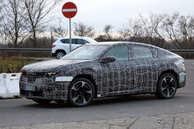 BMWの電気自動車『iX4』のプロトタイプが、テスト走行中に目撃された。BMWは2025年に新型電気クロスオーバーSUV『iX3』をワールドプレミアしており、クーペクロスオーバーの派生モデルとして iX4が間もなく登場する。iX4は現行『X4』の後継となる。