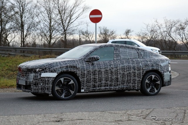 BMWの電気自動車『iX4』のプロトタイプが、テスト走行中に目撃された。BMWは2025年に新型電気クロスオーバーSUV『iX3』をワールドプレミアしており、クーペクロスオーバーの派生モデルとして iX4が間もなく登場する。iX4は現行『X4』の後継となる。