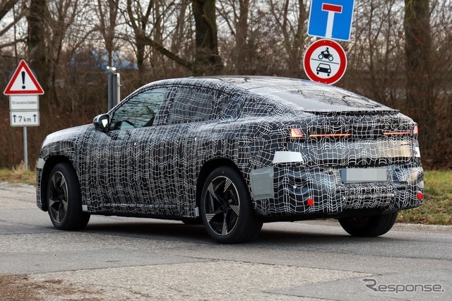 BMWの電気自動車『iX4』のプロトタイプが、テスト走行中に目撃された。BMWは2025年に新型電気クロスオーバーSUV『iX3』をワールドプレミアしており、クーペクロスオーバーの派生モデルとして iX4が間もなく登場する。iX4は現行『X4』の後継となる。