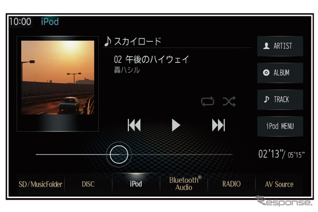 Photo by 三菱電機 「iPod」を接続したときの「メインユニット」の表示画面の一例(三菱電機・ダイヤトーンサウンドナビ)。