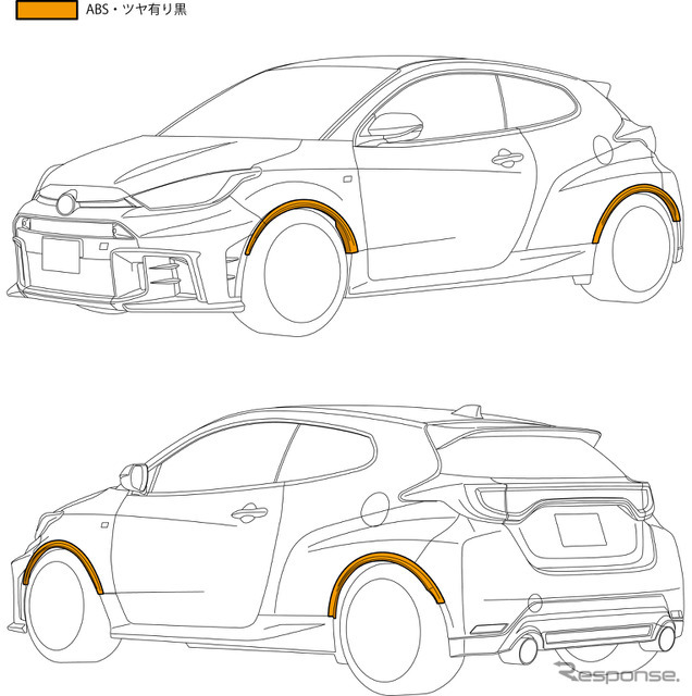 チューニングパーツメーカー・HKSからトヨタ『GRヤリス』用フェンダーモールが新発売。GRヤリスのGEN1・GEN2両モデルに対応していて、片側8mm、全幅16mmのワイド化により、標準車両でも迫力あるスタイルを実現する。