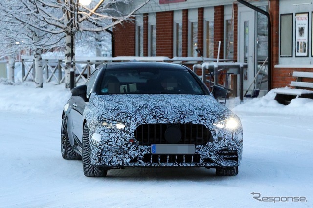 スクープ班のカメラが、メルセデスベンツ『CLE』のフェイスリフト版が雪道テスト走行中の姿を捉えた。前回の遭遇は標準モデルだったが、今回は、より高出力なパワーと、アグレッシブなスタイリングを持つメルセデスAMG 「CLE63」と思われる。