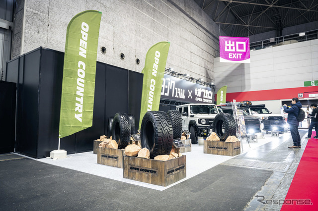 大阪オートメッセ2026に巨大なブースを展開し「PROXES」と「OPEN COUNTRY」の2大看板ブランドに、合計7台の展示を行ったトーヨータイヤ。ブース向かって左側にはプロクセスの世界観を表現する4台、さらに右サイドにはオフ&アウトドアイメージを強く感じさせるオープンカン…
