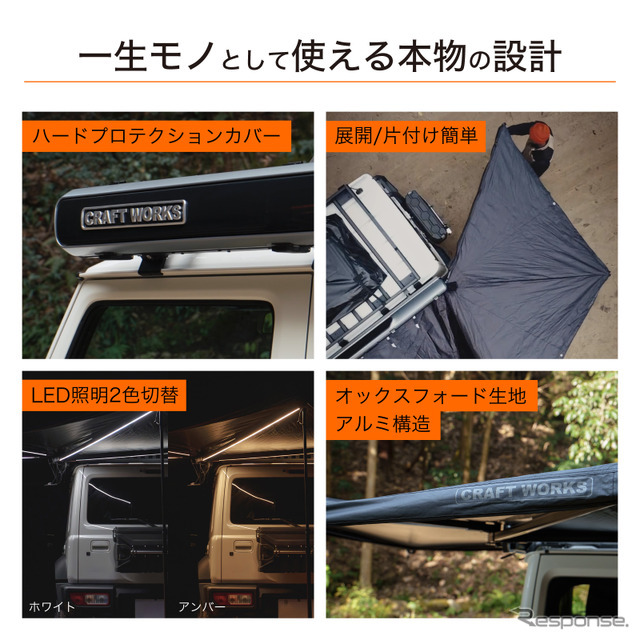 カー用品ブランド「CRAFTWORKS(クラフトワークス)」から、スズキ『ジムニー』『ジムニーシエラ』『ジムニーノマド』専用「ルーフキャリア専用サイドテント」の販売が開始された。