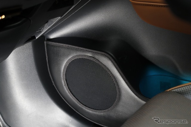 ドアの純正位置にはスカンジナビア165をインストール。レザーのカバーも施すことでドレスアップとプロテクト性アップを狙った。