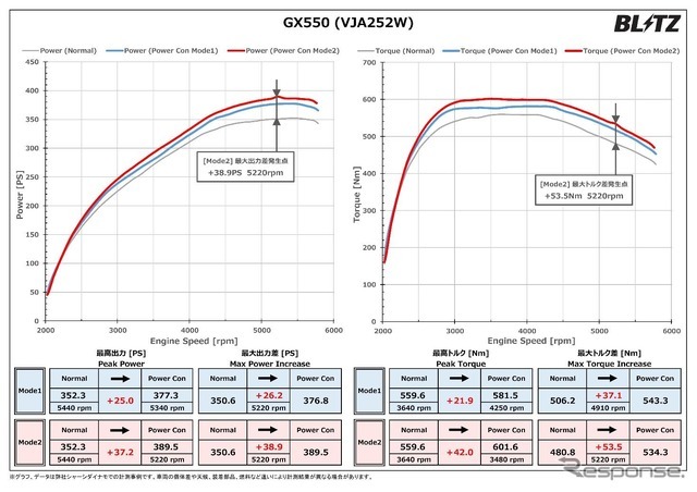 【パワーチェックグラフ】レクサス・GX550:最高出力 約37.2PS、最高トルク 約42.0Nm アップを実現