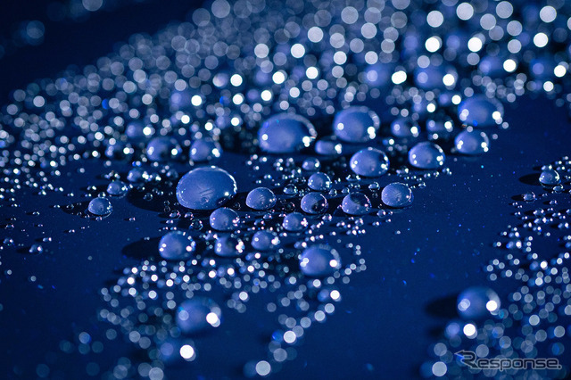 《写真撮影 望月勇輝》 撥水力が非常に高く、水玉の高さに驚かされる