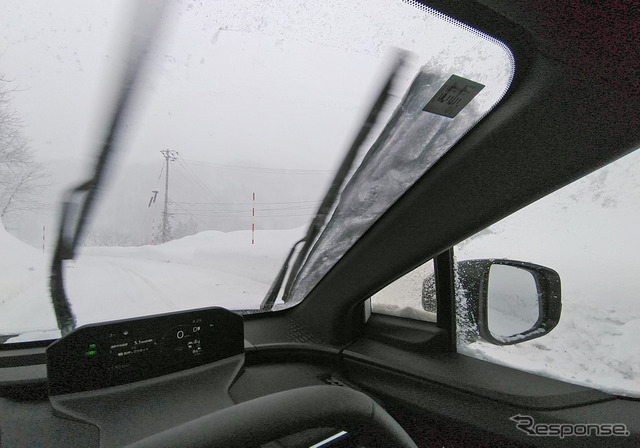 《写真撮影 井元康一郎》 ワイパーの拭き残しが大きく、Aピラー脇に形成された氷の板が視界を狭めた