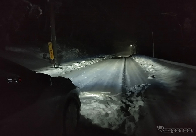 《写真撮影 井元康一郎》 山形の川西から福島の喜多方への抜け道を走行中。路上積雪深は場所によっては20cmを越え、ラッセルを要することもしばしばだった