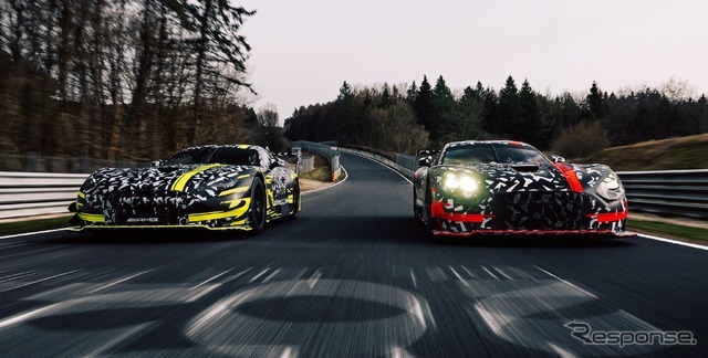 《photo by Mercedes-Benz》 メルセデスAMG『GTブラックシリーズ』(左)とGT3次期型のプロトタイプ