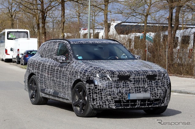 BMWが、現在開発中の次期『iX5』の高性能バージョンの最新プロトタイプを、カメラが捉えた。巨大な23インチホイールに、とんでもなく太いタイヤ。また、ミシュランがまだ発表していないタイヤを装着し、未来的なデザインが確認できる。
