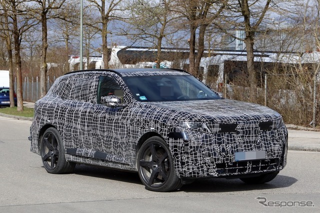 BMWが、現在開発中の次期『iX5』の高性能バージョンの最新プロトタイプを、カメラが捉えた。巨大な23インチホイールに、とんでもなく太いタイヤ。また、ミシュランがまだ発表していないタイヤを装着し、未来的なデザインが確認できる。