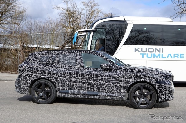 BMWが、現在開発中の次期『iX5』の高性能バージョンの最新プロトタイプを、カメラが捉えた。巨大な23インチホイールに、とんでもなく太いタイヤ。また、ミシュランがまだ発表していないタイヤを装着し、未来的なデザインが確認できる。